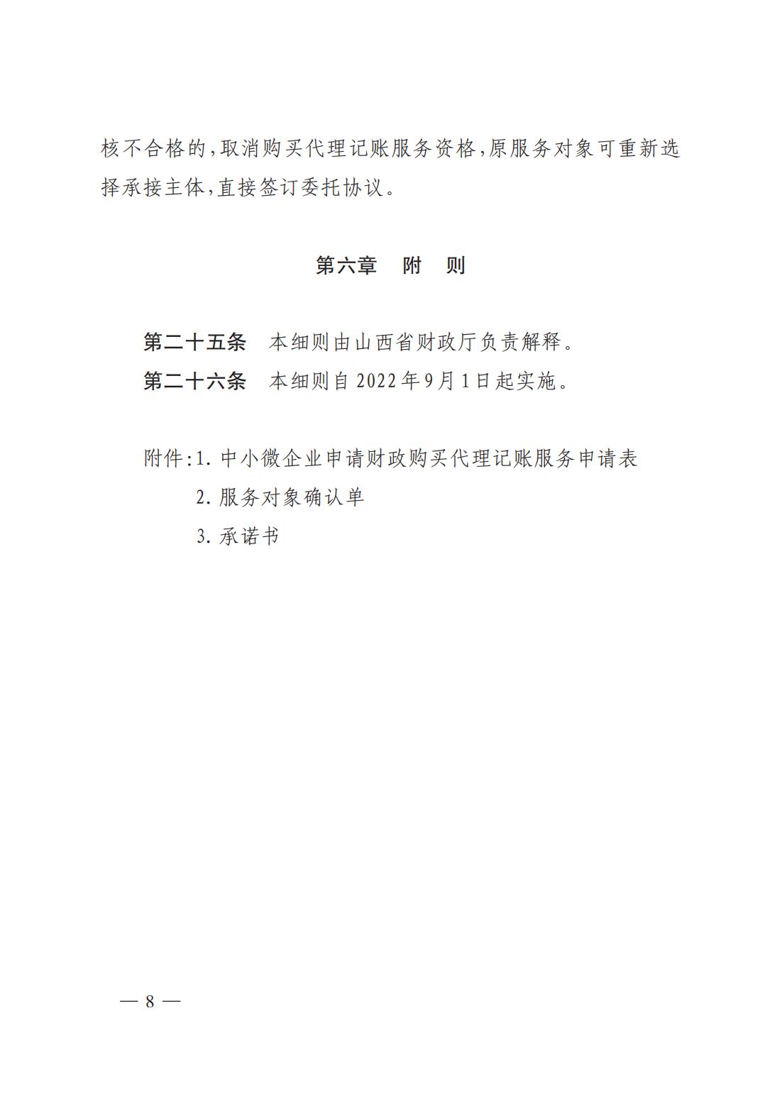 山西省財政廳為中小微企業(yè)購買代理記賬服務實施細則(試行)